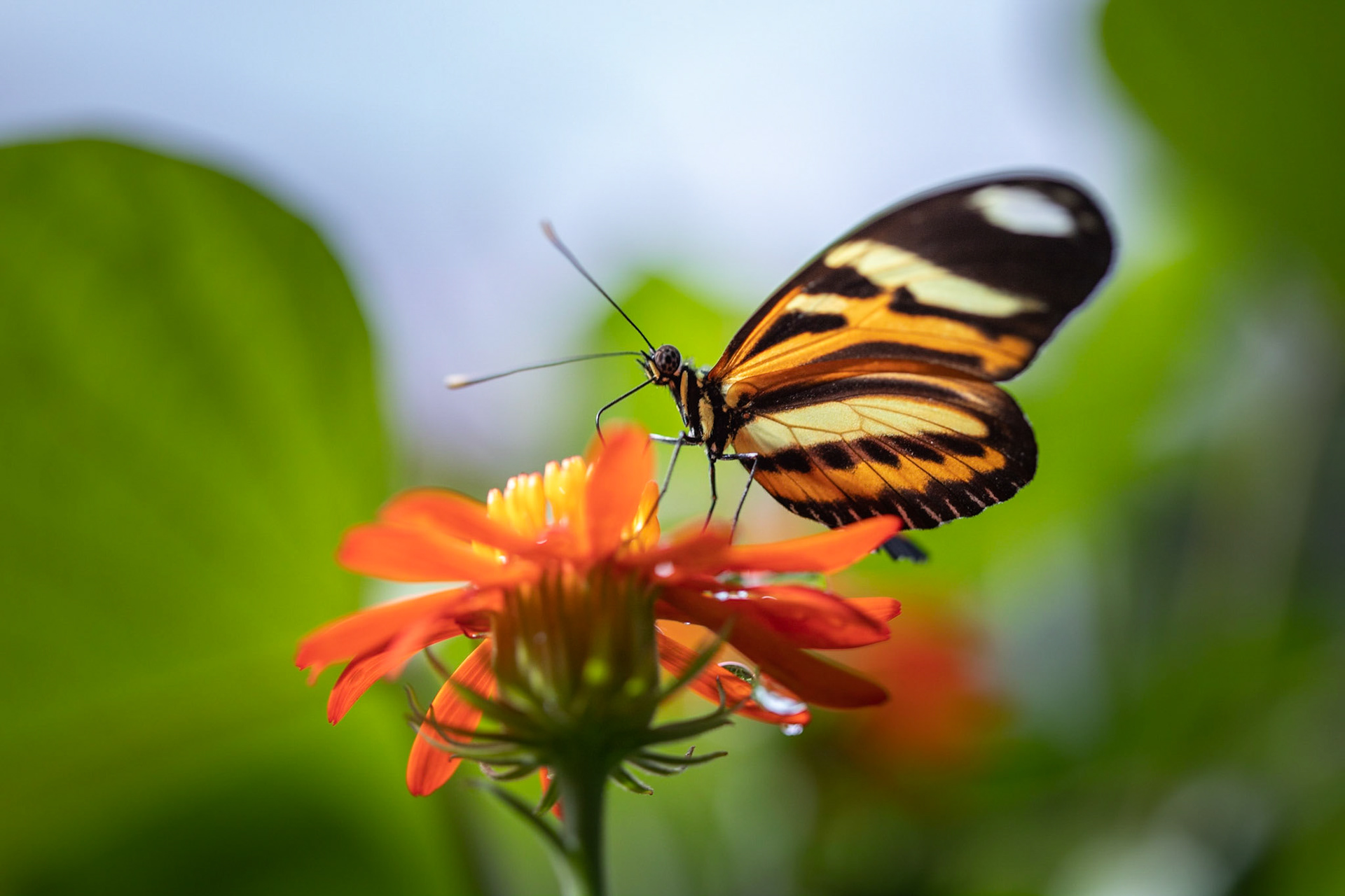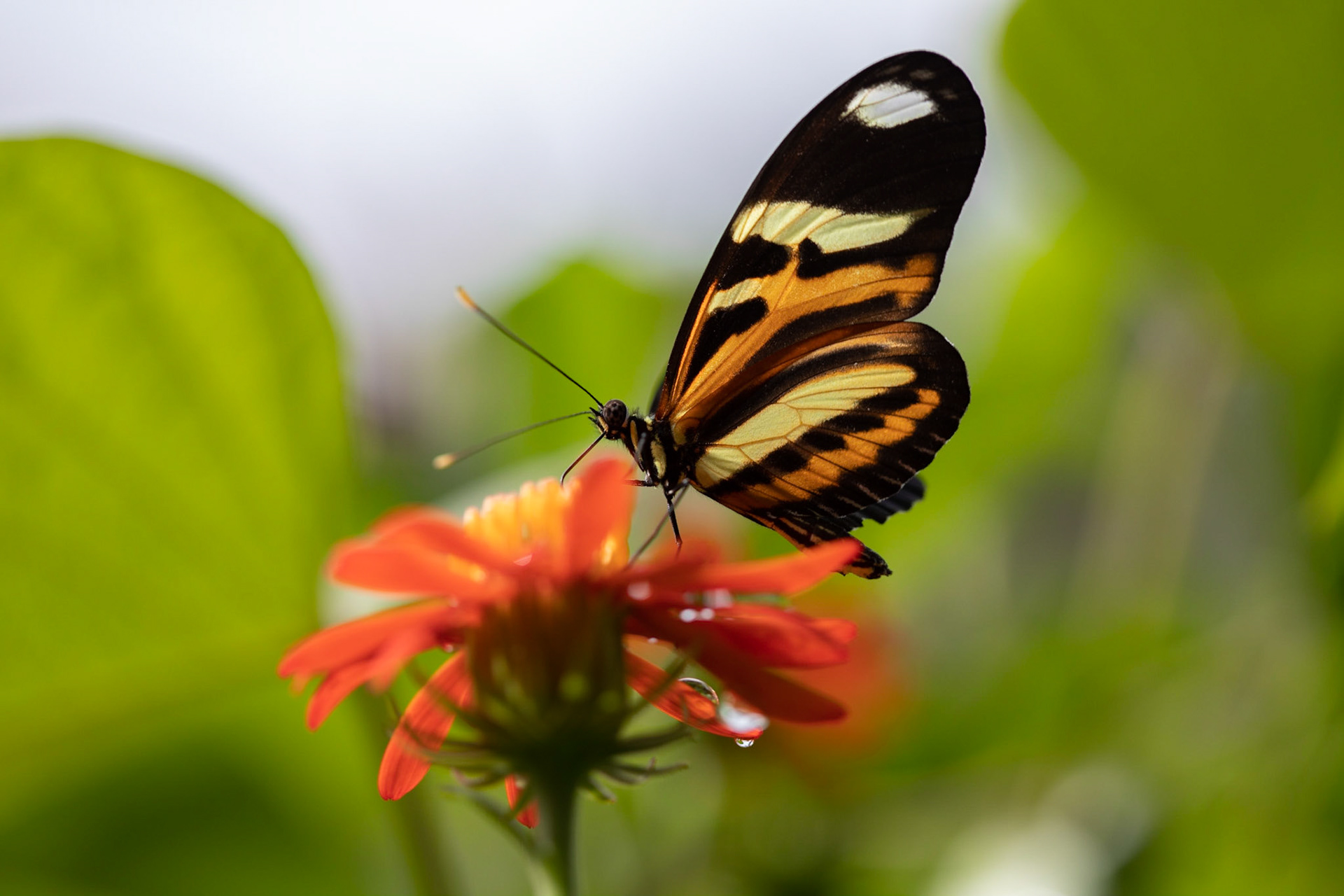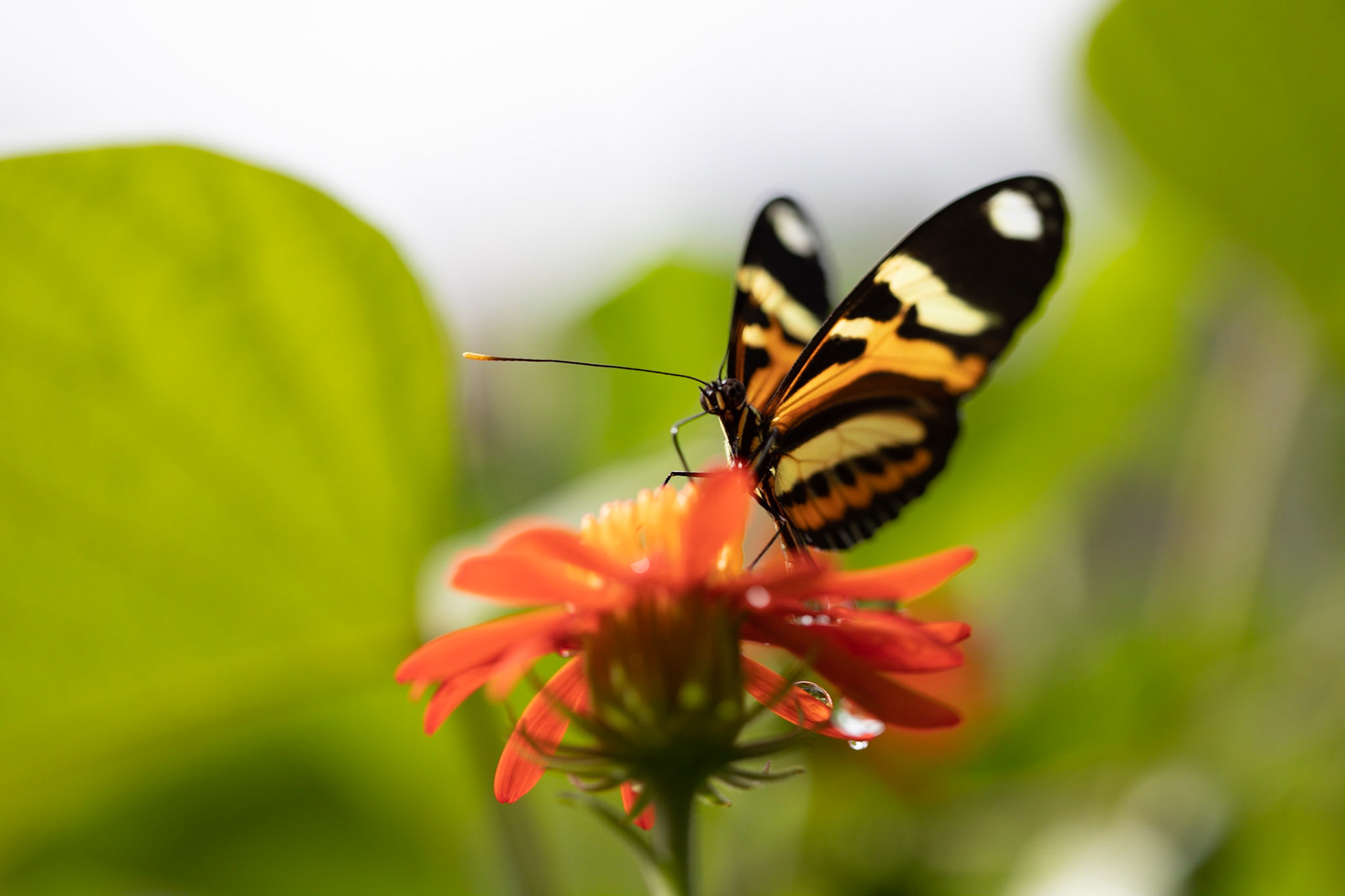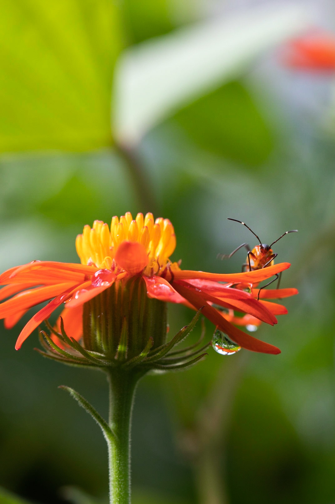 Uma minúscula aranha translúcida no jardim.