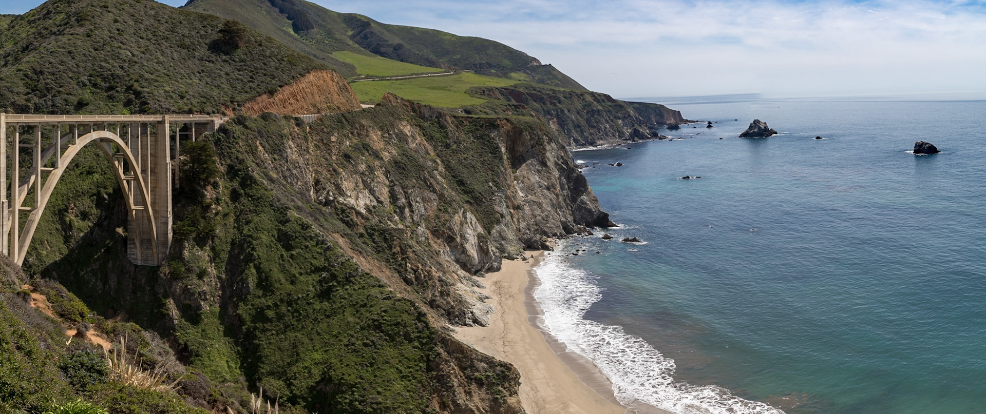 Praia e cachoeira numa clássica foto do parque estadual Julia Pfeiffer